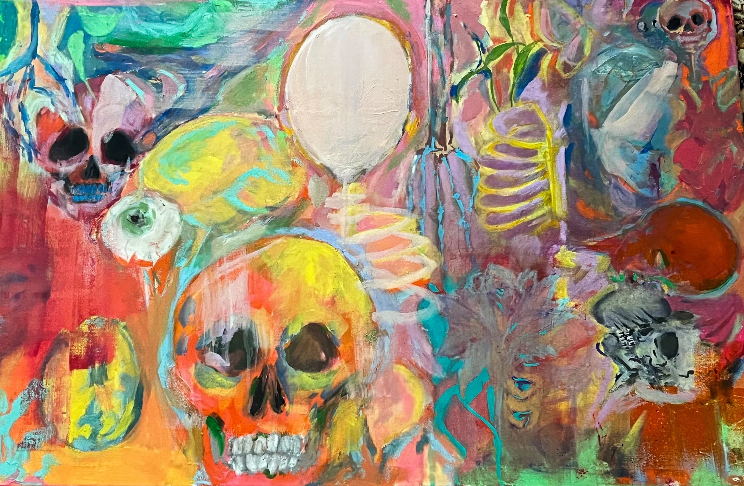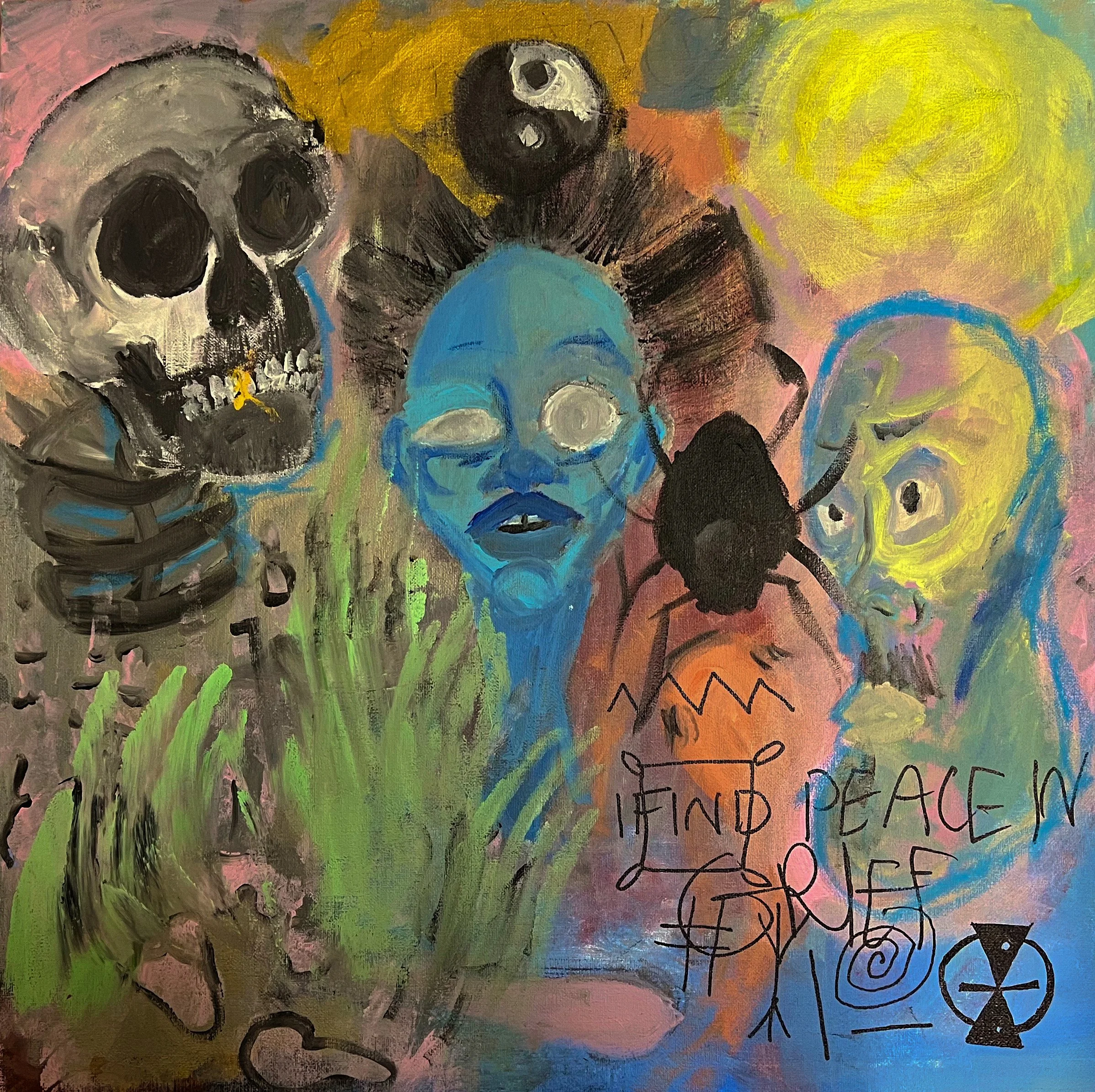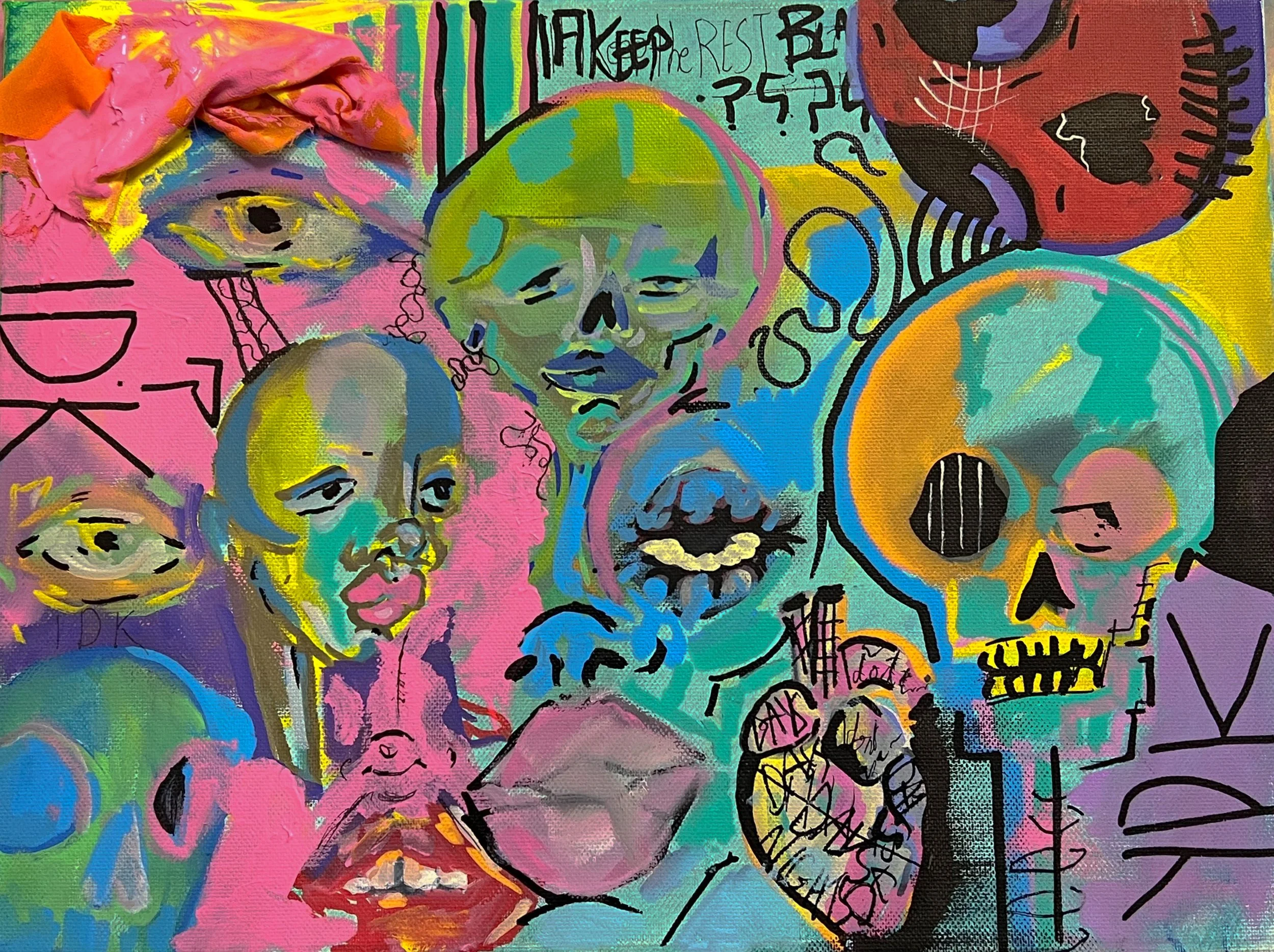 ACRYLIC AND FABRIC ON CANVAS